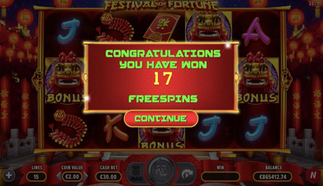 The audio design of Festival of Fortune perfectly complements its festive theme. The soundtrack features traditional Chinese music, with rhythmic drums and melodic flutes that create an authentic festival atmosphere. Sound effects, such as the crackling of fireworks and the jingling of coins, further enhance the immersive experience, making each spin feel celebratory and exciting.