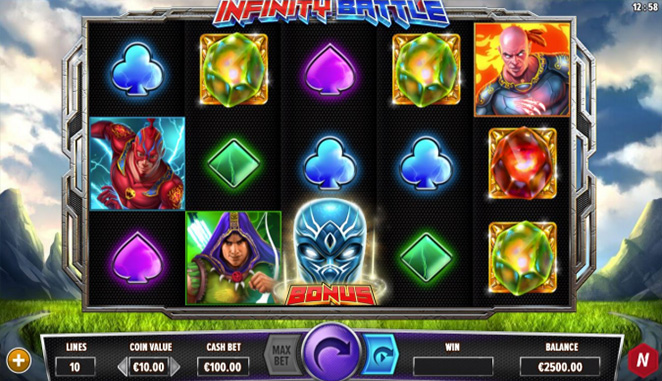 NetGaming’s exciting offering, Infinity Battle slot game, invites players into a world of superheroes, exhilarating battles, and impressive prizes. This 5-reel, 3-row video slot with 10 fixed paylines offers a medium volatility gaming experience, with an RTP of 95.43%. However, you still get to pick a stake between $0.02 and $100, giving plenty of options for all players. The game is packed with exciting features and a customizable free spin round that promises engaging gameplay and substantial rewards.