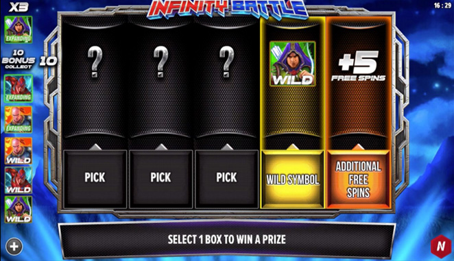 Infinity Battle stands out with its rich array of special features to to choose from, you can build your own free spins – multipliers, additional free spins, wild symbol, expanding symbol and special quest.