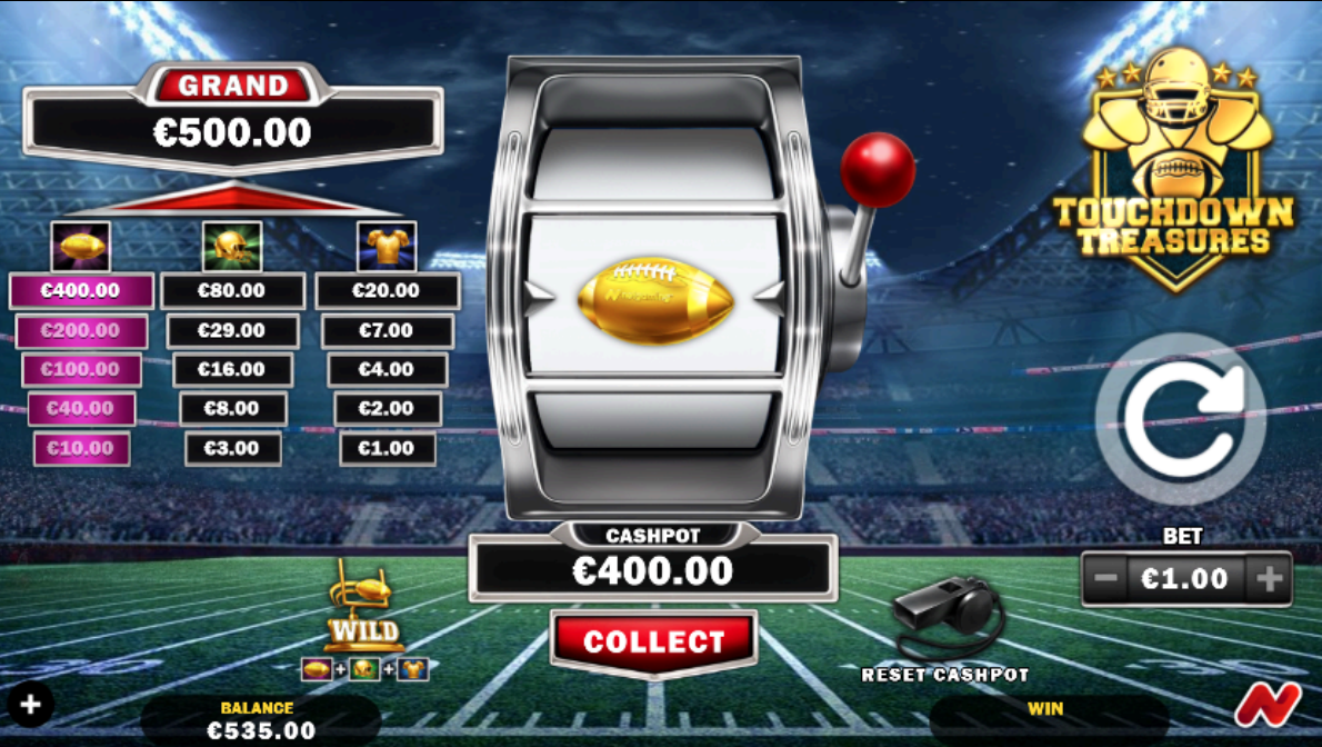 To try your hand at this exhilarating game, check out the demo version here. Experience the excitement of Touchdown Treasures and see if you can reach the highest levels and claim the GRAND Jackpot!
