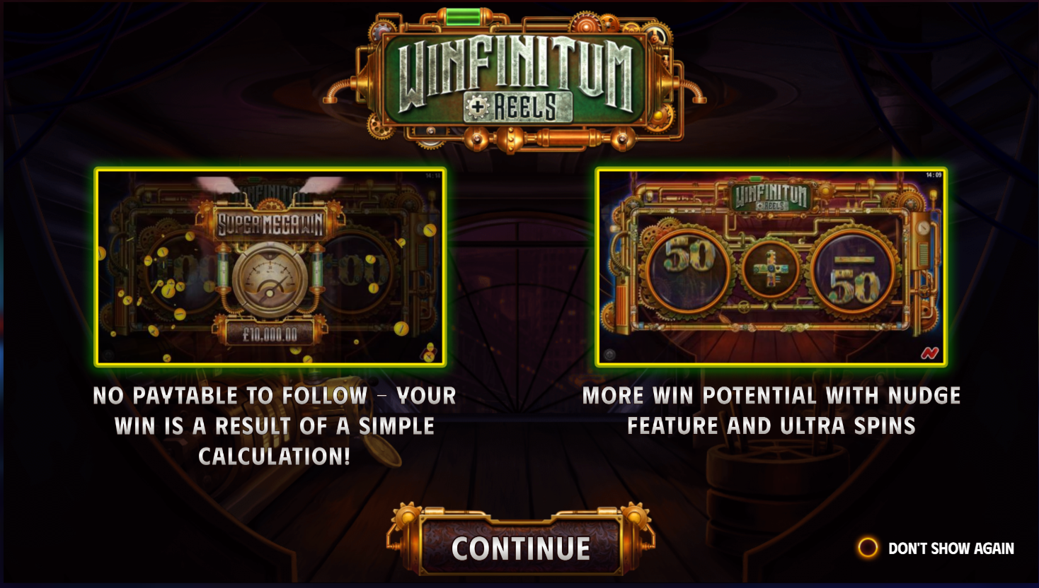 Winfinitum Reels is one of the easiest slots there is for the players. You don’t need a paytable, just simple addition, multiplication, or a decimal point determines the bet multiplier. This multiplier is applied to the total cash bet to calculate the win. Our first steampunk theme slot with a twist!