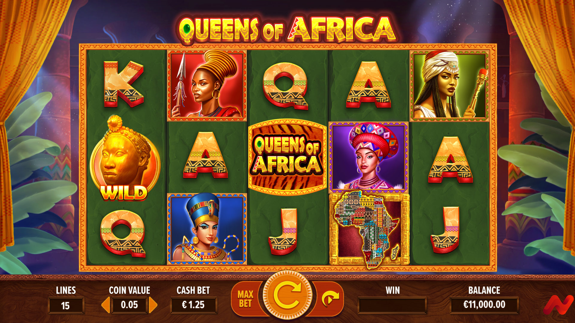 NetGaming’s original slot release, Queens of Africa, takes players on a majestic journey through the rich heritage and landscapes of Africa, showcasing powerful queens who reign supreme over their territories. This game combines striking visuals, engaging gameplay mechanics, and rewarding features to create a truly immersive experience.